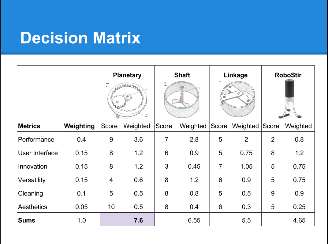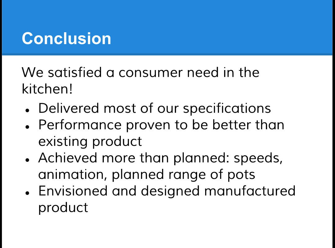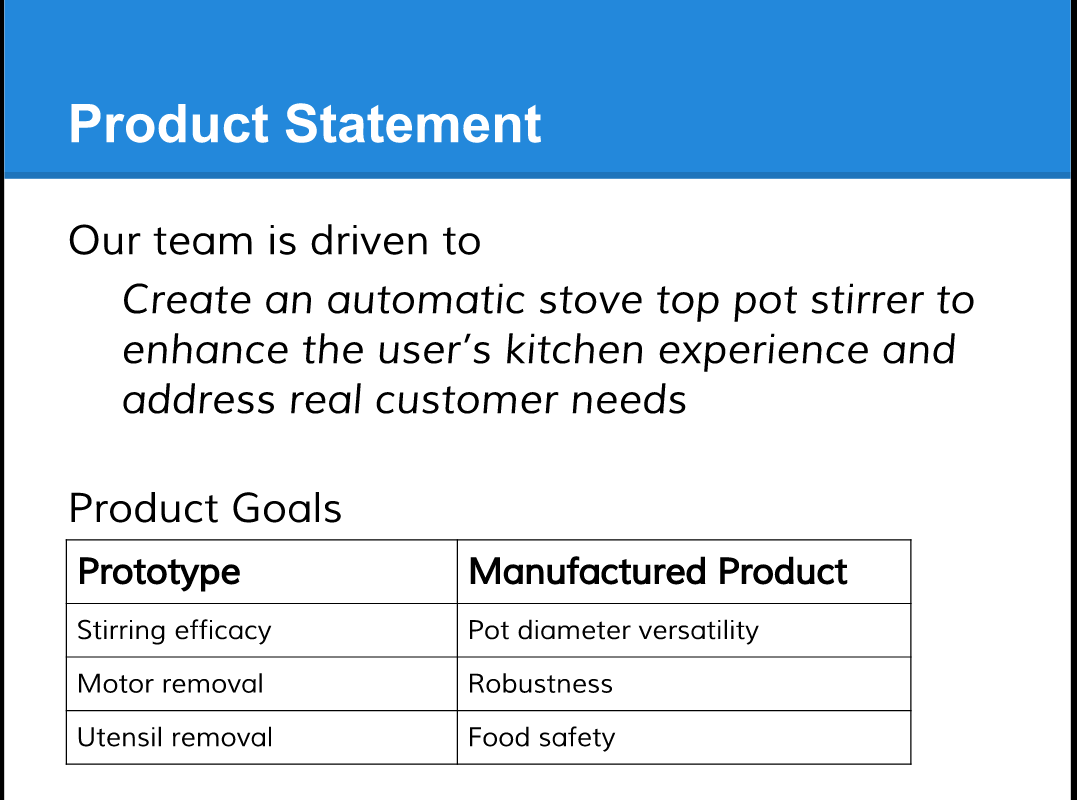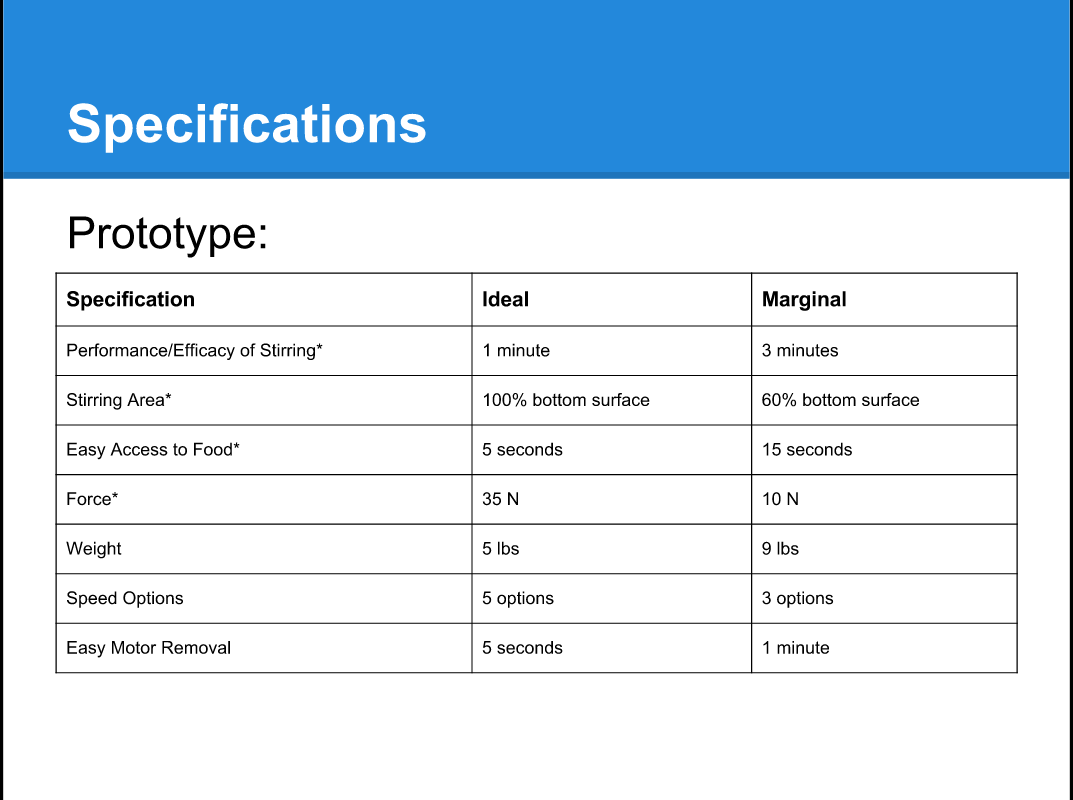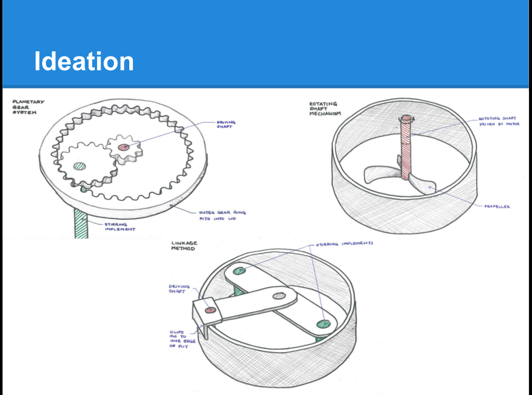 This project encompasses the spirit of the International Housewares Design Competition. The goal was to create a mechanical device for the home to improve working conditions. The area of focus was the kitchen and this product addresses the need to constantly stir soups, chili’s and sauces. The product is intended for the busy host/hostess who may not have time to spend at the stove. Another user may also be someone with arthritis who may not be able to stir for a long period of time. Final powerpoint presentation, proof of concept prototype, and my animations can be found in the google presentation to the left. Team of 3.