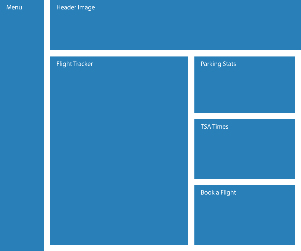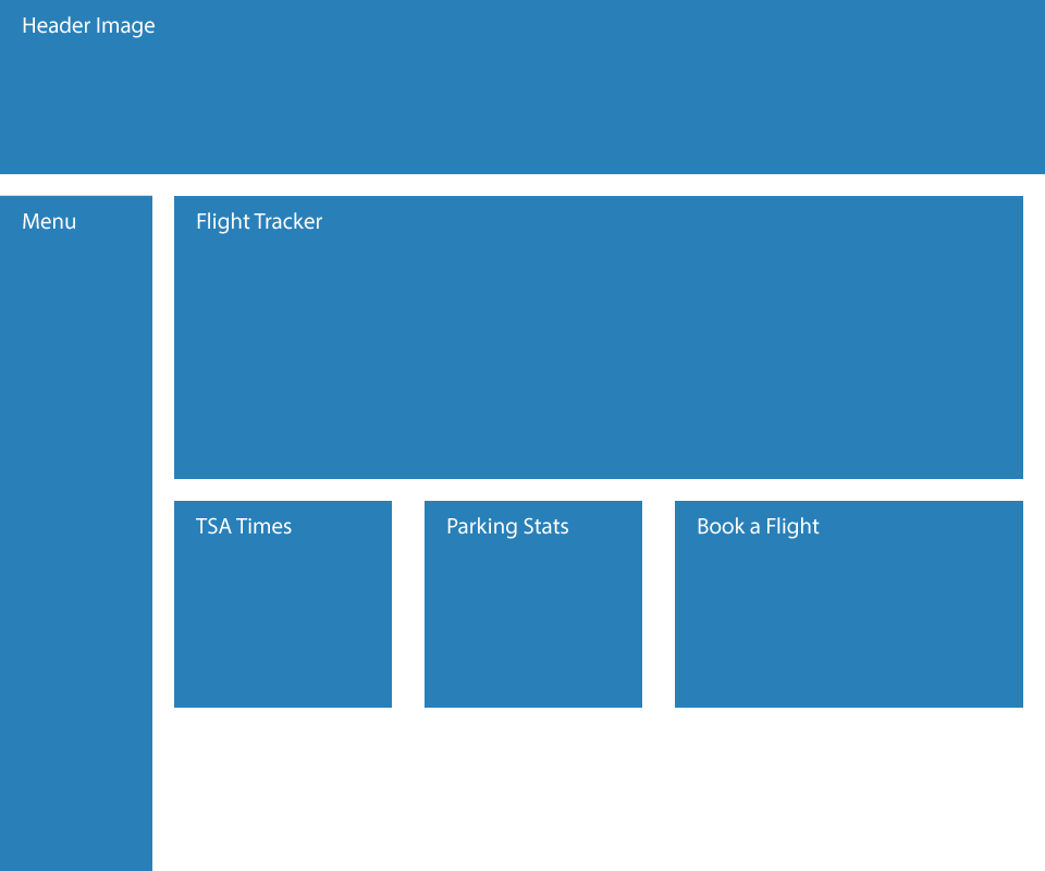 Header image on all screens on the top, left menu and have the flight tracker at the user’s fingertips. The most important information on the home screen with a few other features.