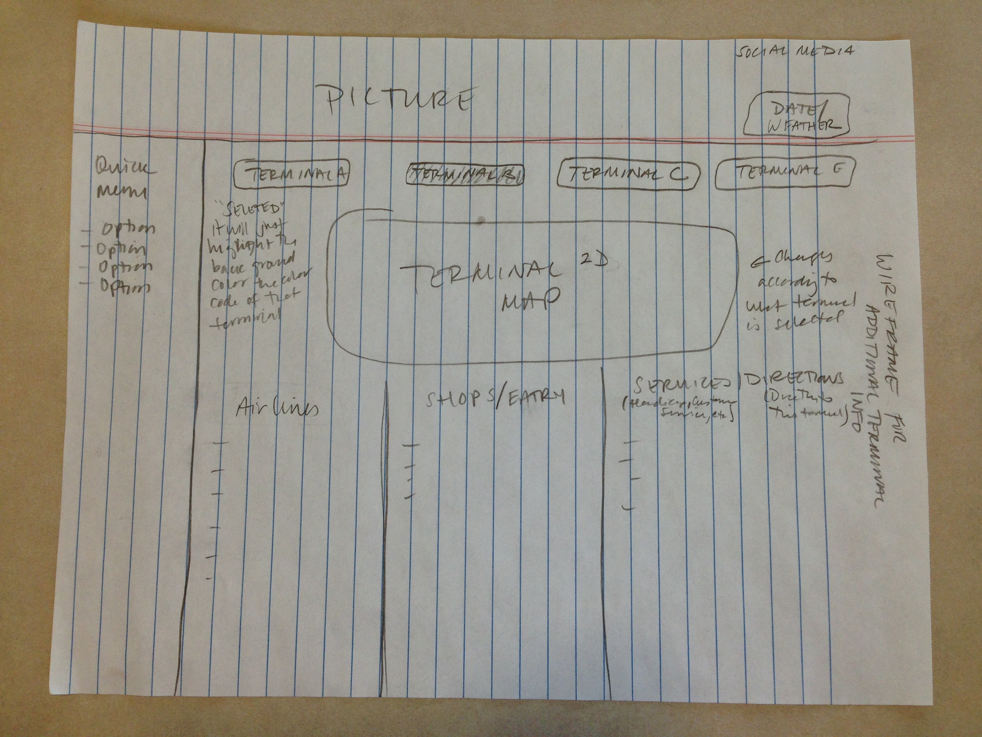 The universal header image and menu is still on the screen. Centrally located map of the terminal, with different buttons for each terminal on the top. Other dashboard information on the bottom.