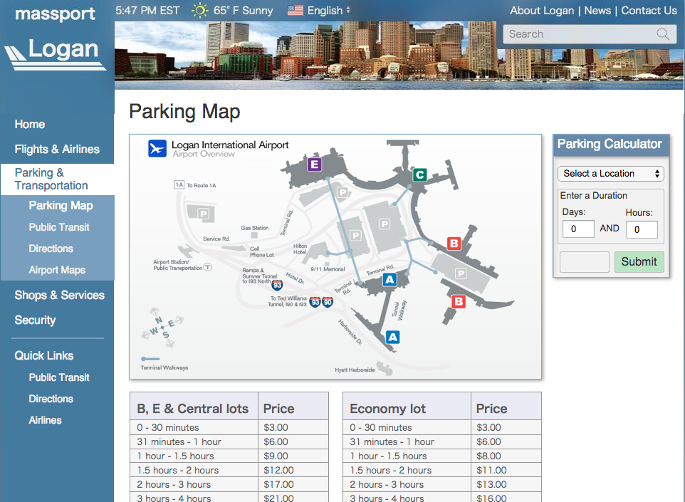 On the right is a parking calculator so users can determine which lot is better for their budget.