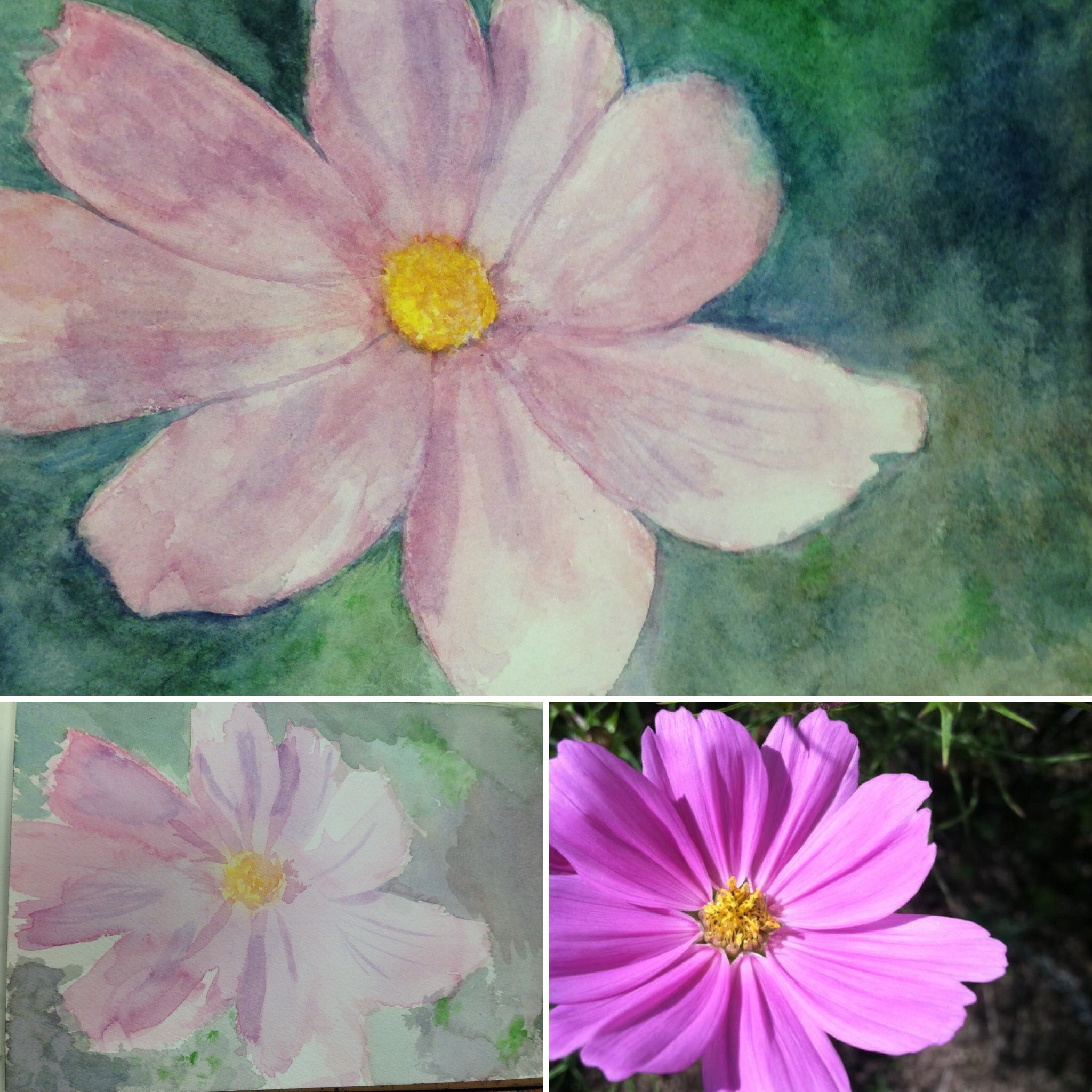 In my last semester at Tufts I took a Watercolor class with Kate Finnegan as the instructor. I have grown so much from this experience as an artist and as a person, to appreciate my own photography and paintings as they stand. I see things in a new light and am excited to share my works here. Here you can see the comparisons of the object, beginning work and final piece.