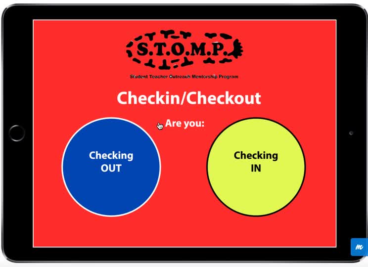 Checkin/out Home screen. Simple Interface is important for these on-the-go students!